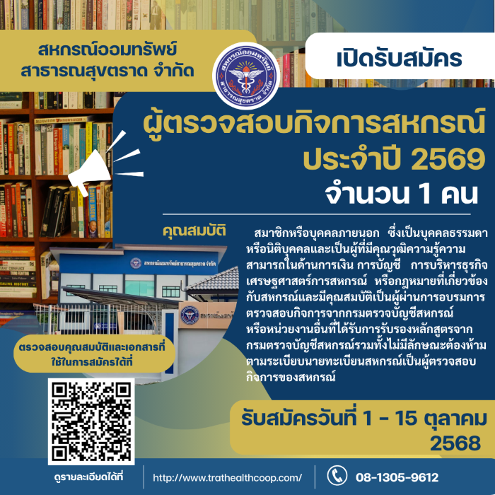 ประชาสัมพันธ์การรับสมัครผู้ตรวจสอบกิจการสหกรณ์ ประจำปี 2569