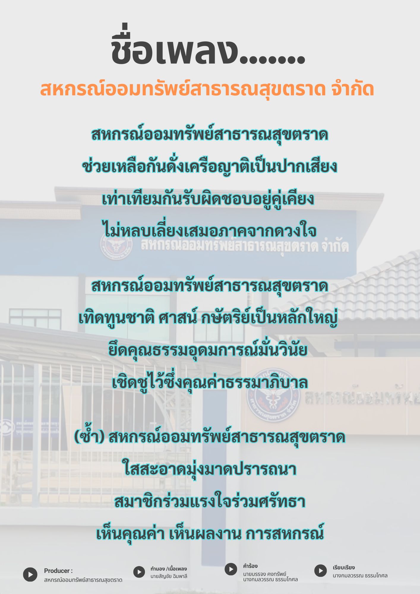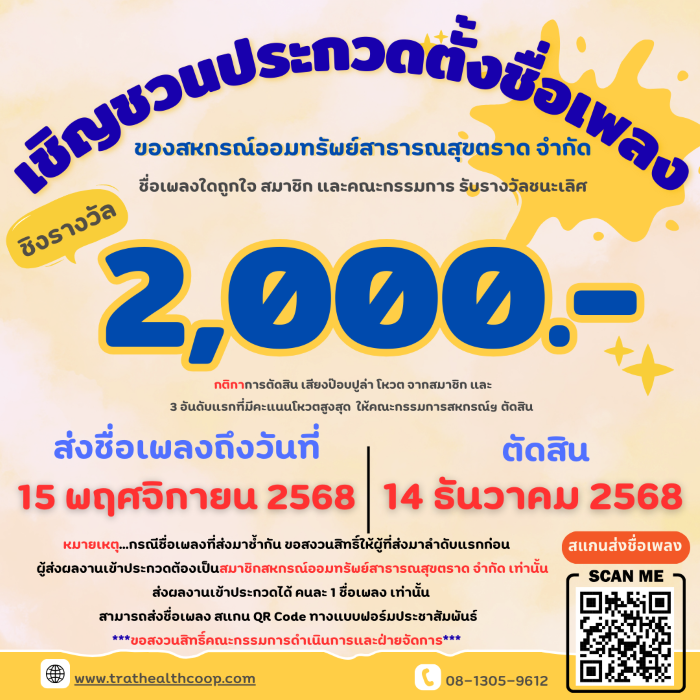 เชิญชวนประกวดตั้งชื่อเพลงของสหกรณ์ออมทรัพย์สาธารณสุขตราด จำกัด